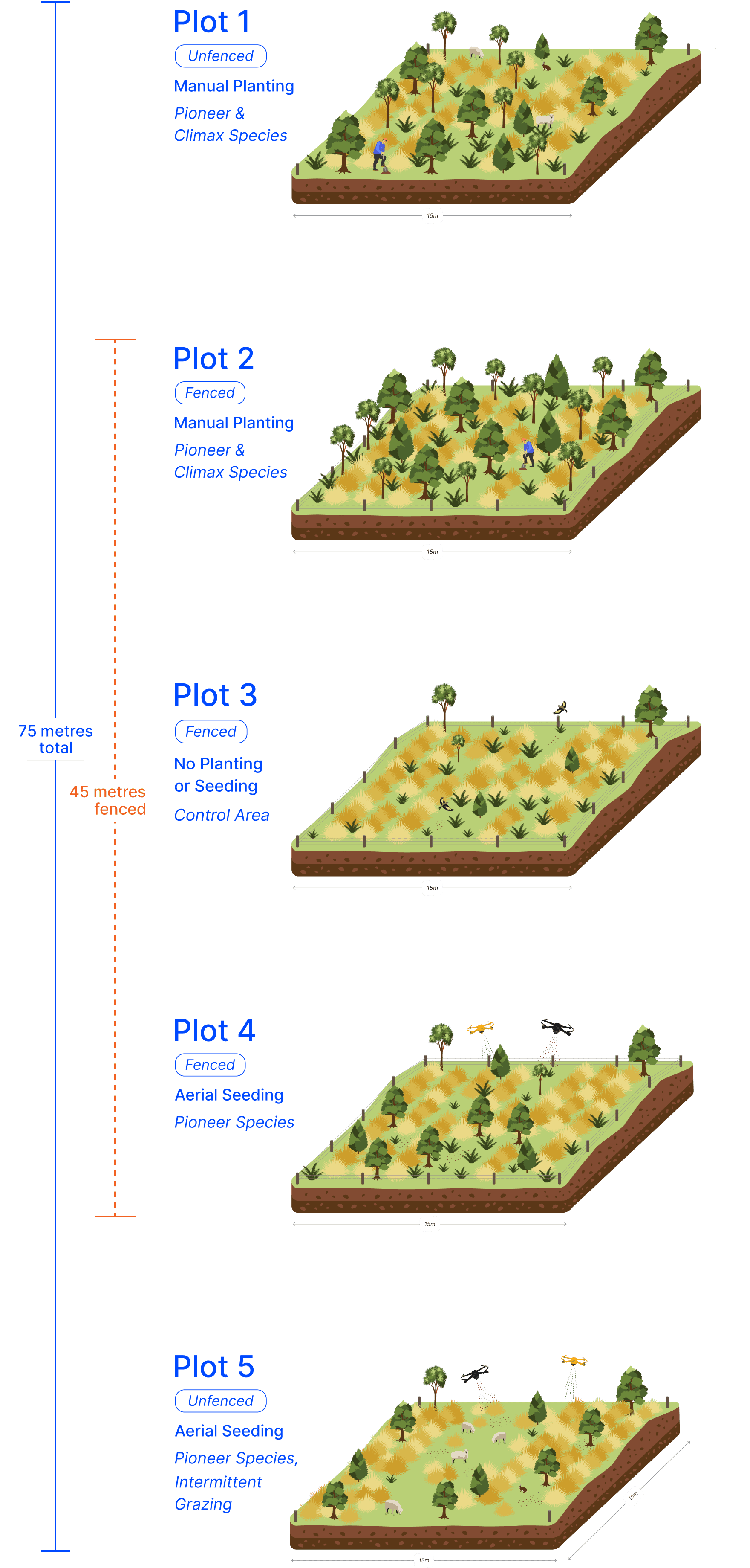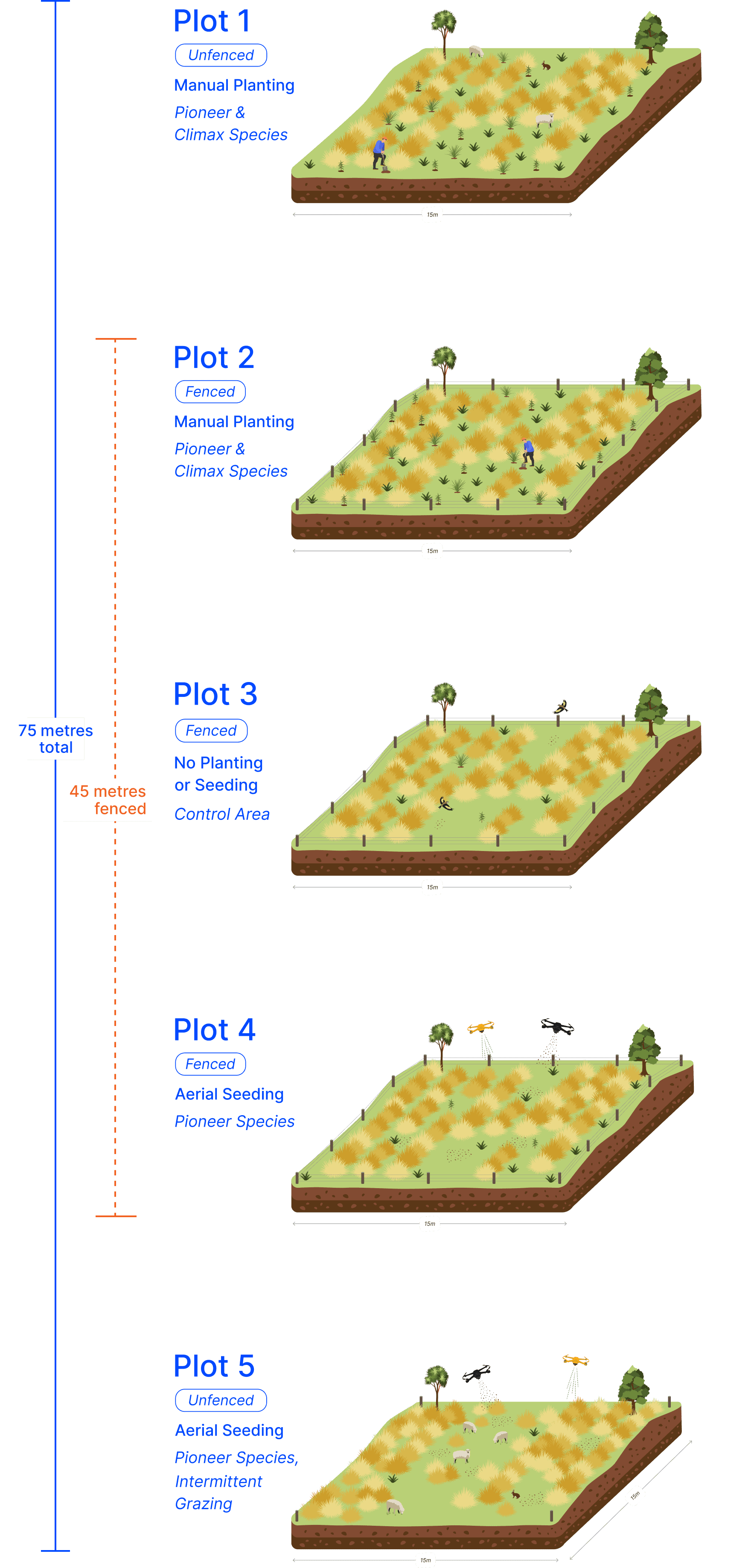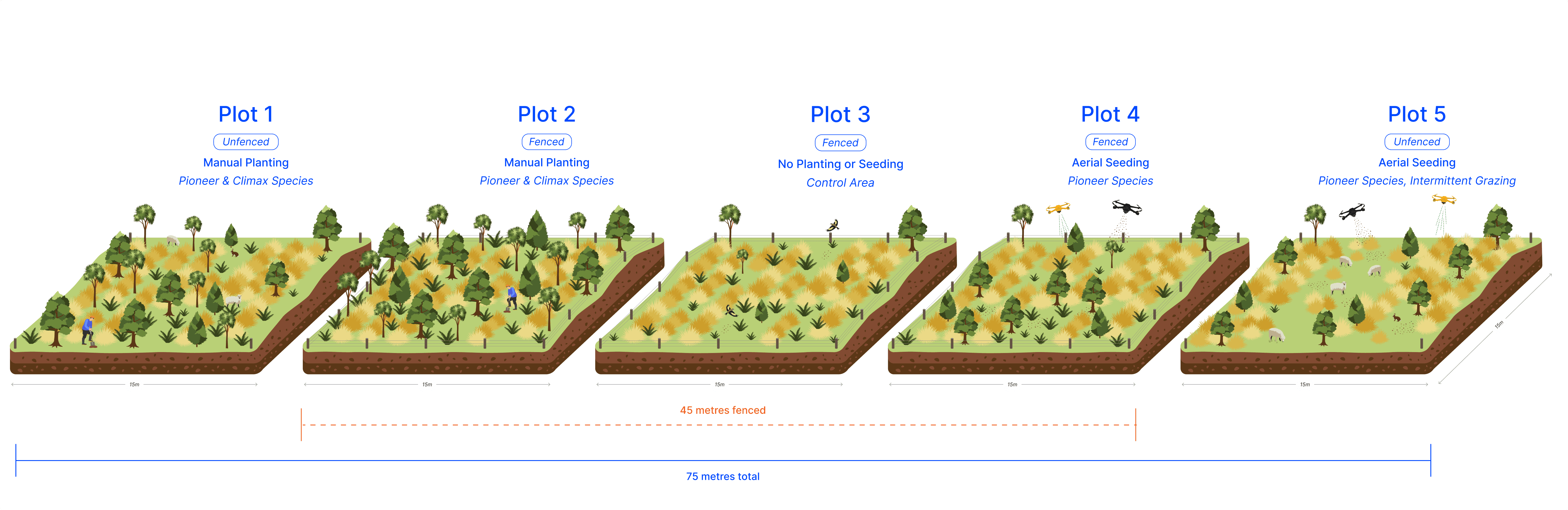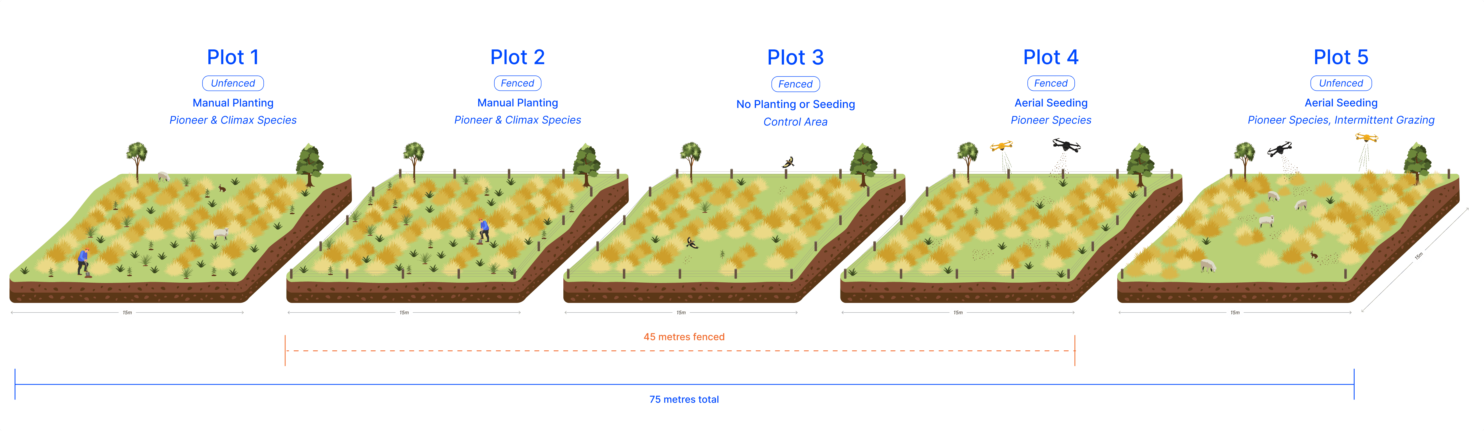 This graphic shows the different methods under trial at Black Hill Station.